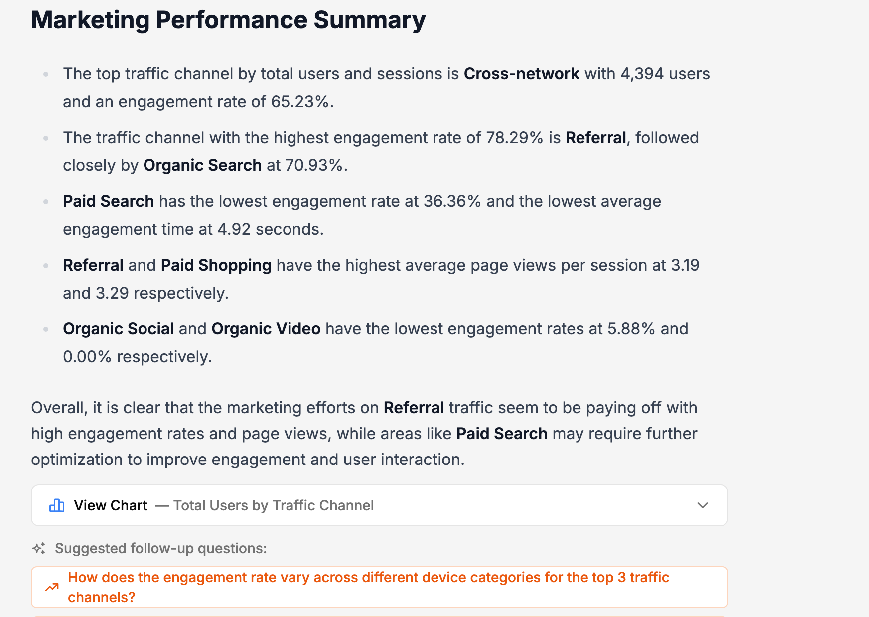 Ask questions in plain English and get instant answers about your traffic and performance.
